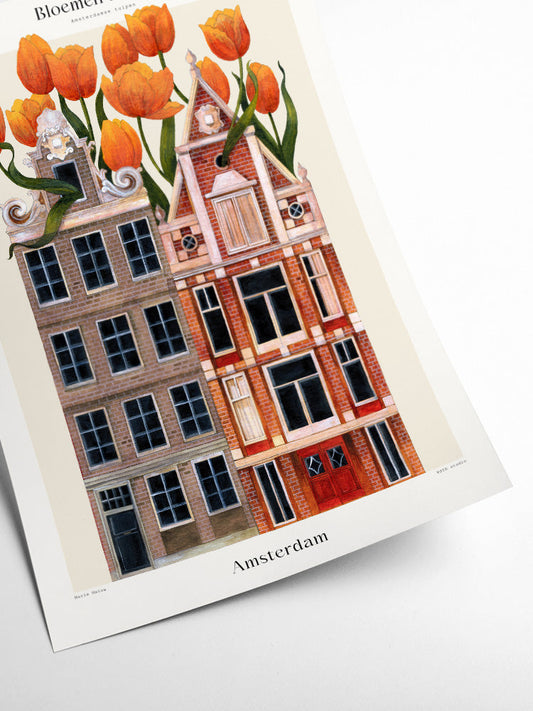 Poster - Bloemen Huisjes Amsterdam 30x40cm