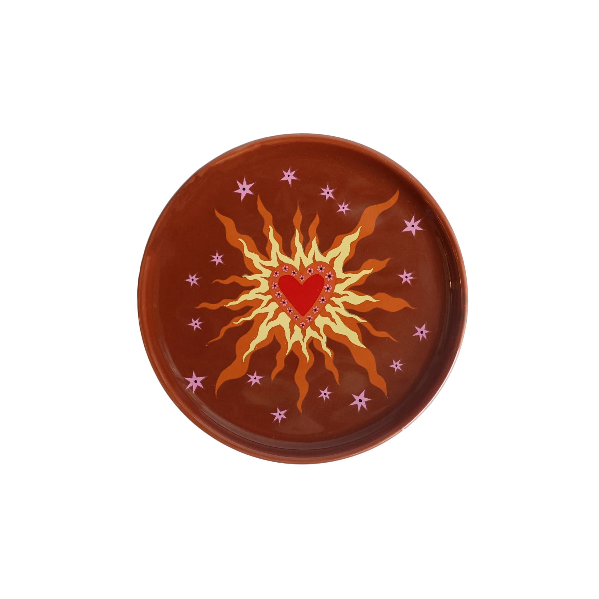 Dit stralende bordje van All The Luck In The World met een Hartje met Vuur in het midden, brengt een warme en vrolijke sfeer op tafel!