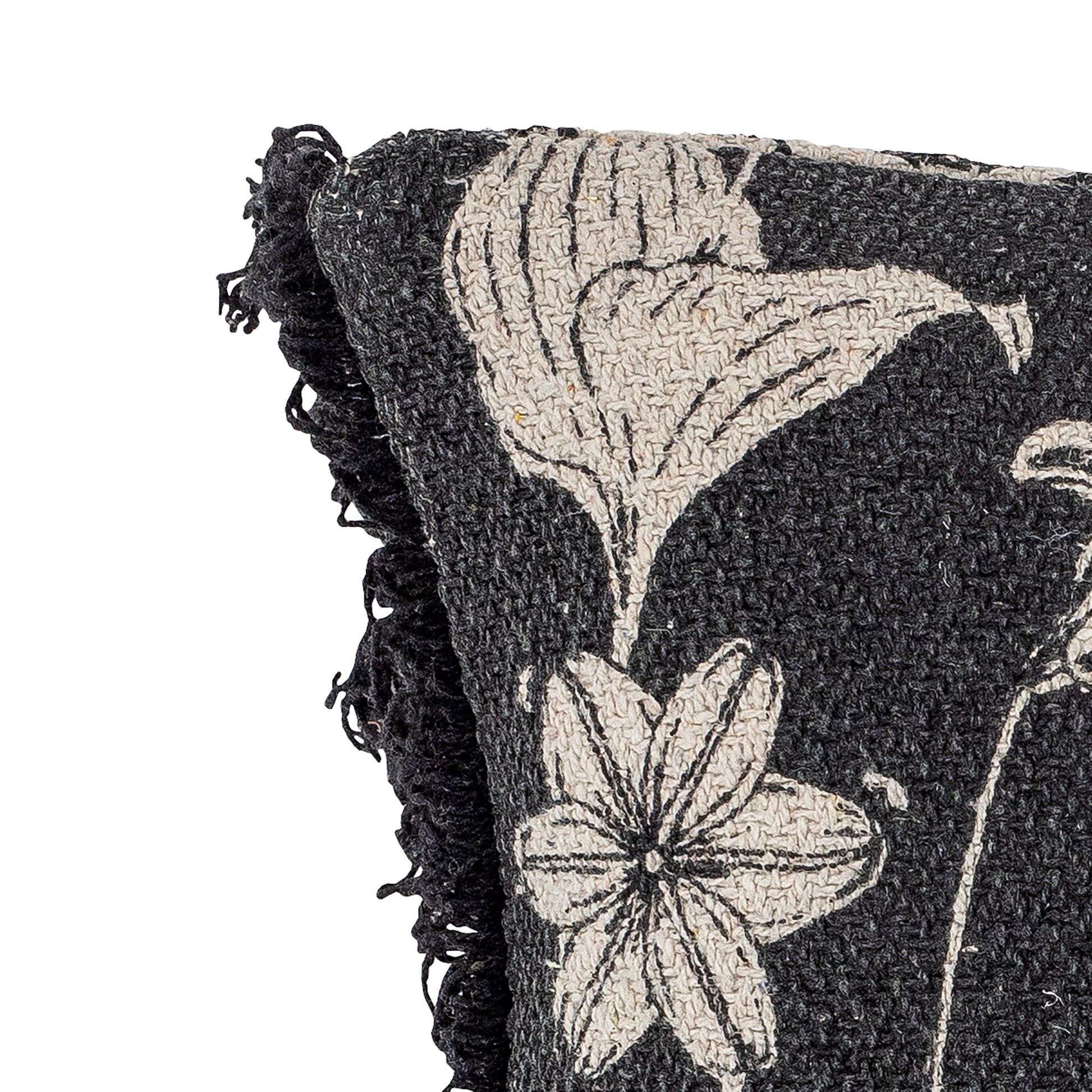 Het Mali sierkussen van Bloomingville is een prachtig kussen gemaakt van gerecycled katoen. Het kussen is zwart met geprinte bloemen in een lichte kleur voor een mooi contrast.