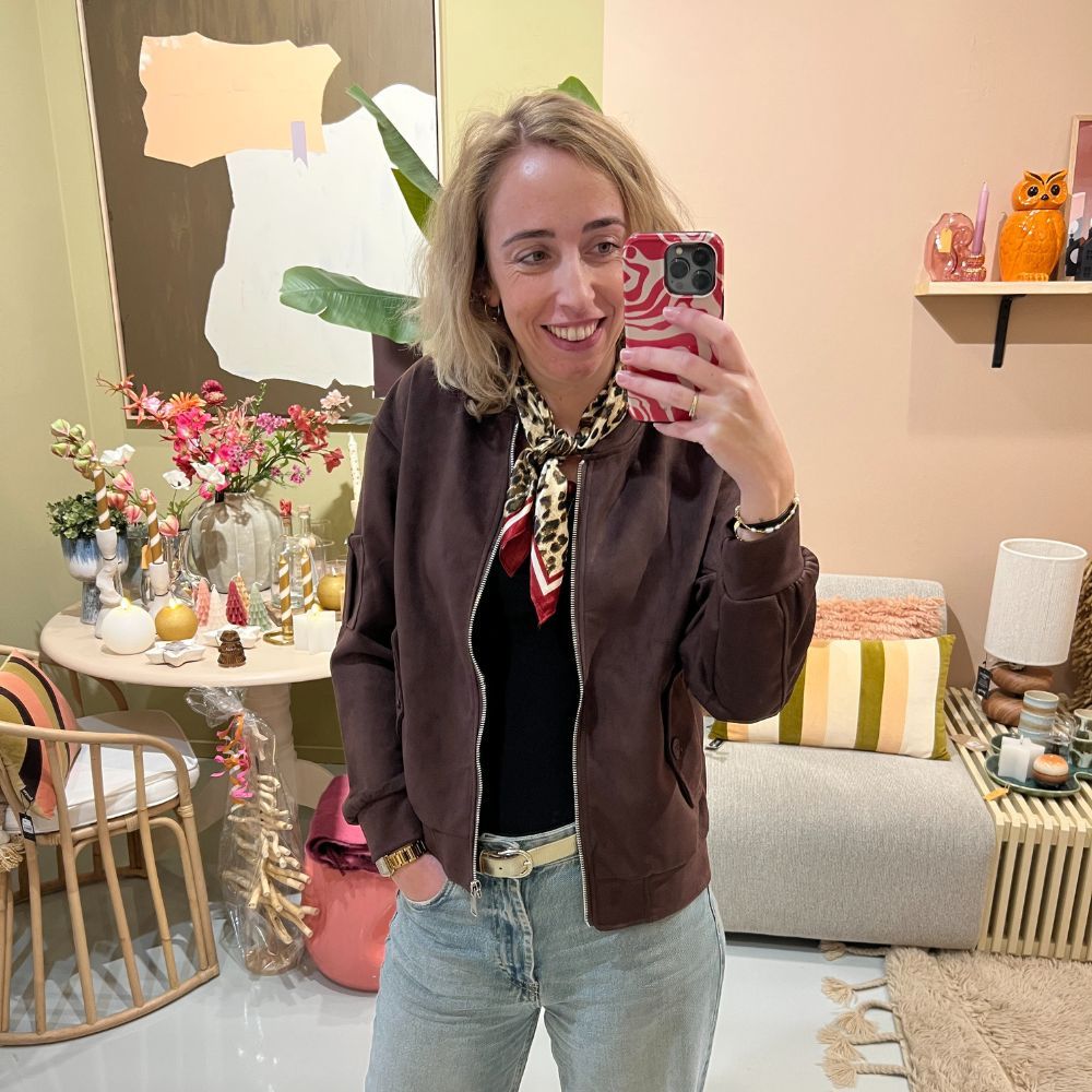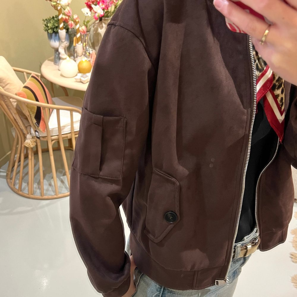 Wat een fijn jasje is dit! Draag hem lekker binnen op een leuke top, of buiten met een lekkere sjaal. Het jasje heeft een suede look, sluit met een zilverkleurige rits en heeft 2 steekzakjes met daarop een (nep) knoopje. Op de linkermouw zit een klein zakje.
