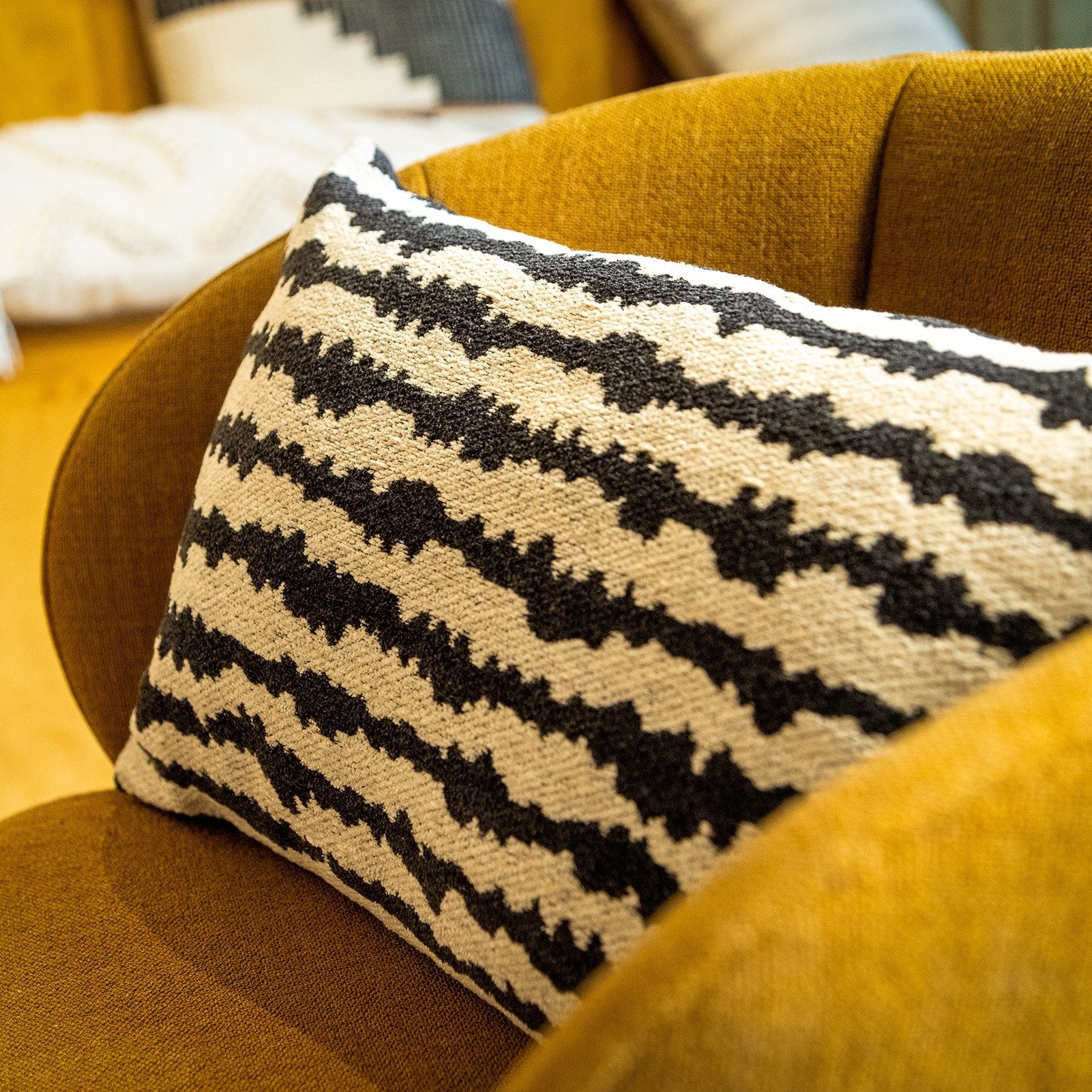 Dit prachtige zwart-wit gestreepte sierkussen is gemaakt van een dikke, zwart-wit gestreepte stof die zowel stijlvol als comfortabel is.