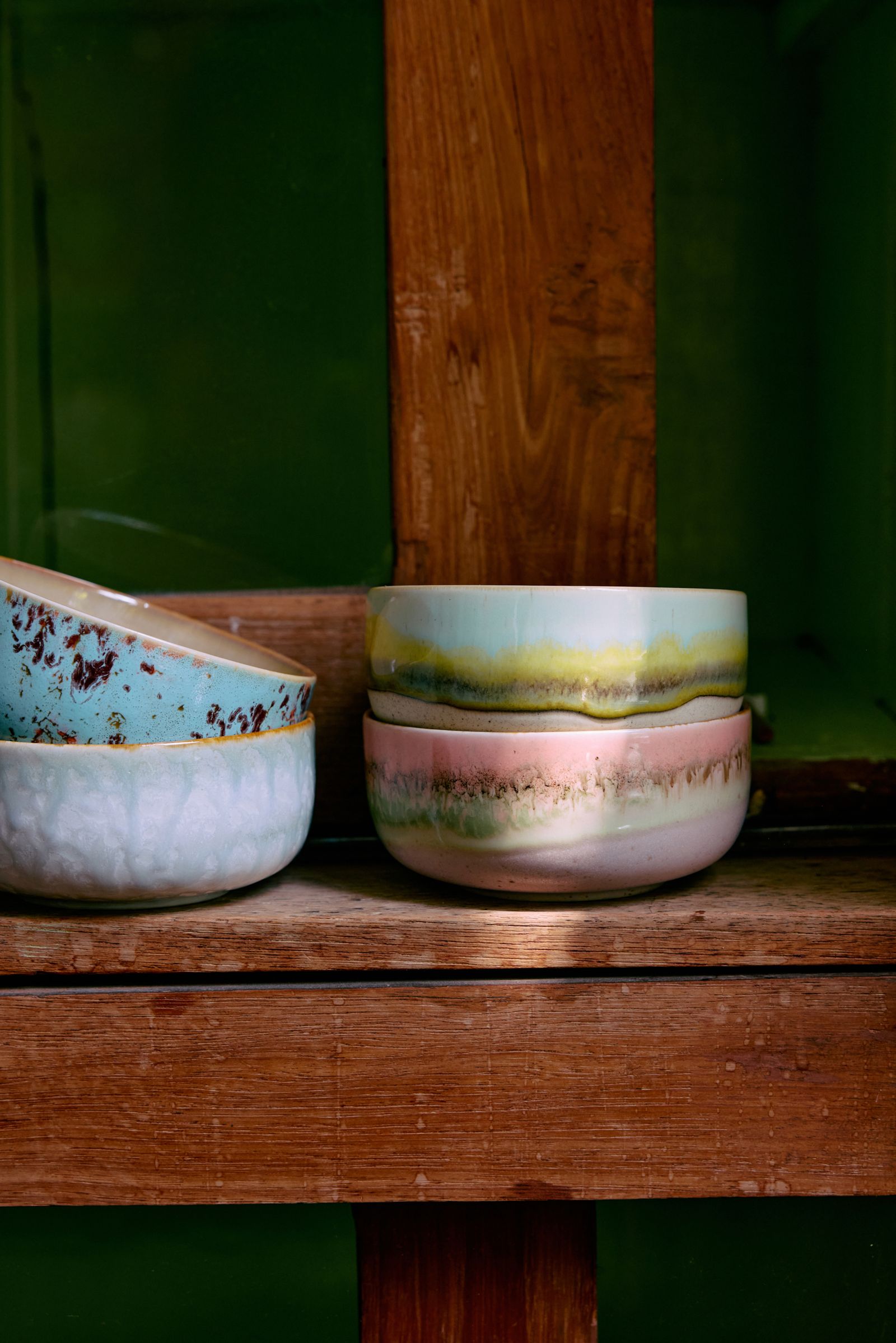 De nieuwe 70’s ceramics collectie van HKLIVING haalt inspiratie uit decennia van kunst – denk aan popart, surrealisme, expressionisme en abstracte vormen. Elk stuk combineert gedurfde afwerkingen met textuurrijke glazuren, voor een look die zowel zorgvuldig samengesteld als creatief aanvoelt.
