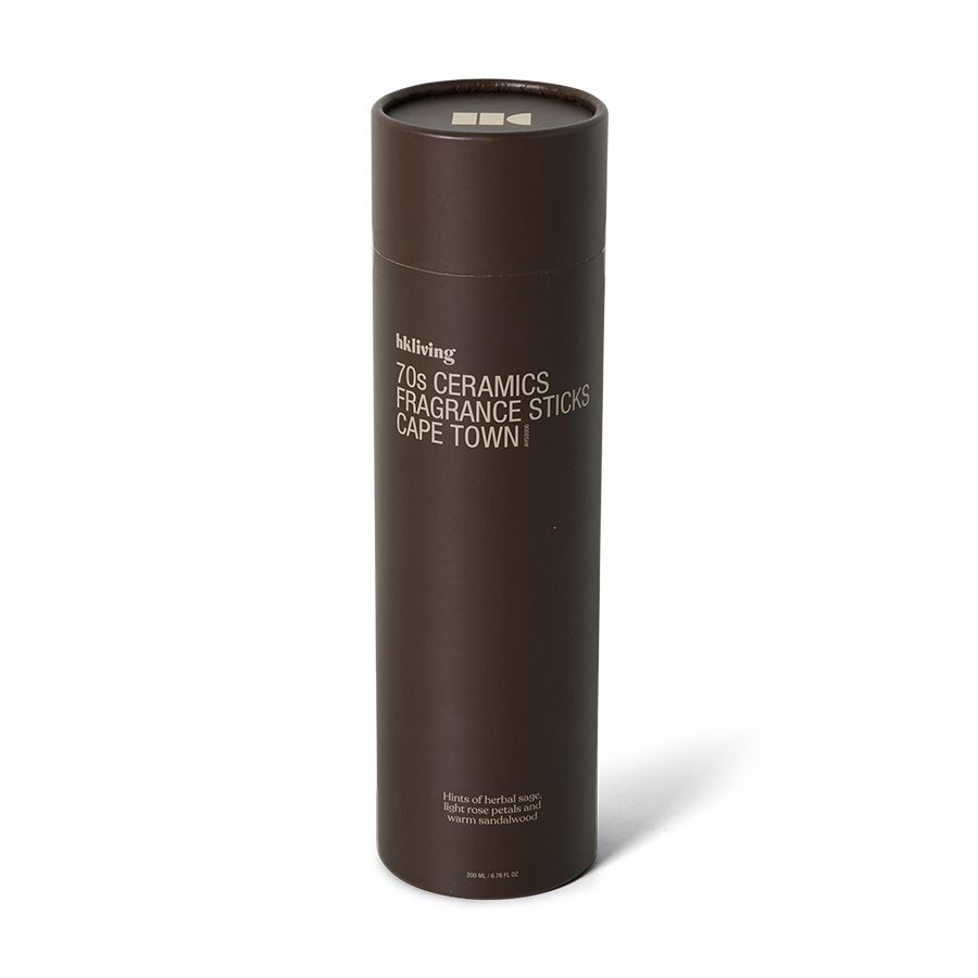 Onderdeel van de 70’s ceramics collectie van HKLIVING, waar nostalgische stijl samenkomt met een subtiele geur. De frisse geur van salie roept de ongetemde schoonheid van kliffen en kustpaden op. Fijne rozenblaadjes voegen een vleugje van de weelderige stadstuinen toe. Warme, aardse tonen van sandelhout en cederhout vangen de essentie van de surfcultuur en adembenemende landschappen van Kaapstad. Een vleugje balsem maakt de geur compleet en weerspiegelt de verfijning van de bruisende wijnbars van de stad. Deze aromatische mix brengt de betoverende ziel en rijke diversiteit van Kaapstad's esthetiek in je huis.