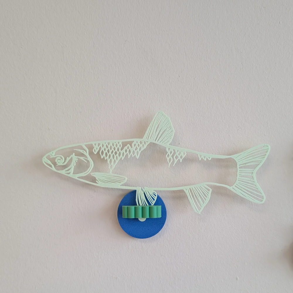 Deze leuke vissen van Joeff kan je in de basishouder plaatsen om neer te zetten. Met de muurschakel kun je de vogels ook aan de muur hangen zonder boren of schroeven.