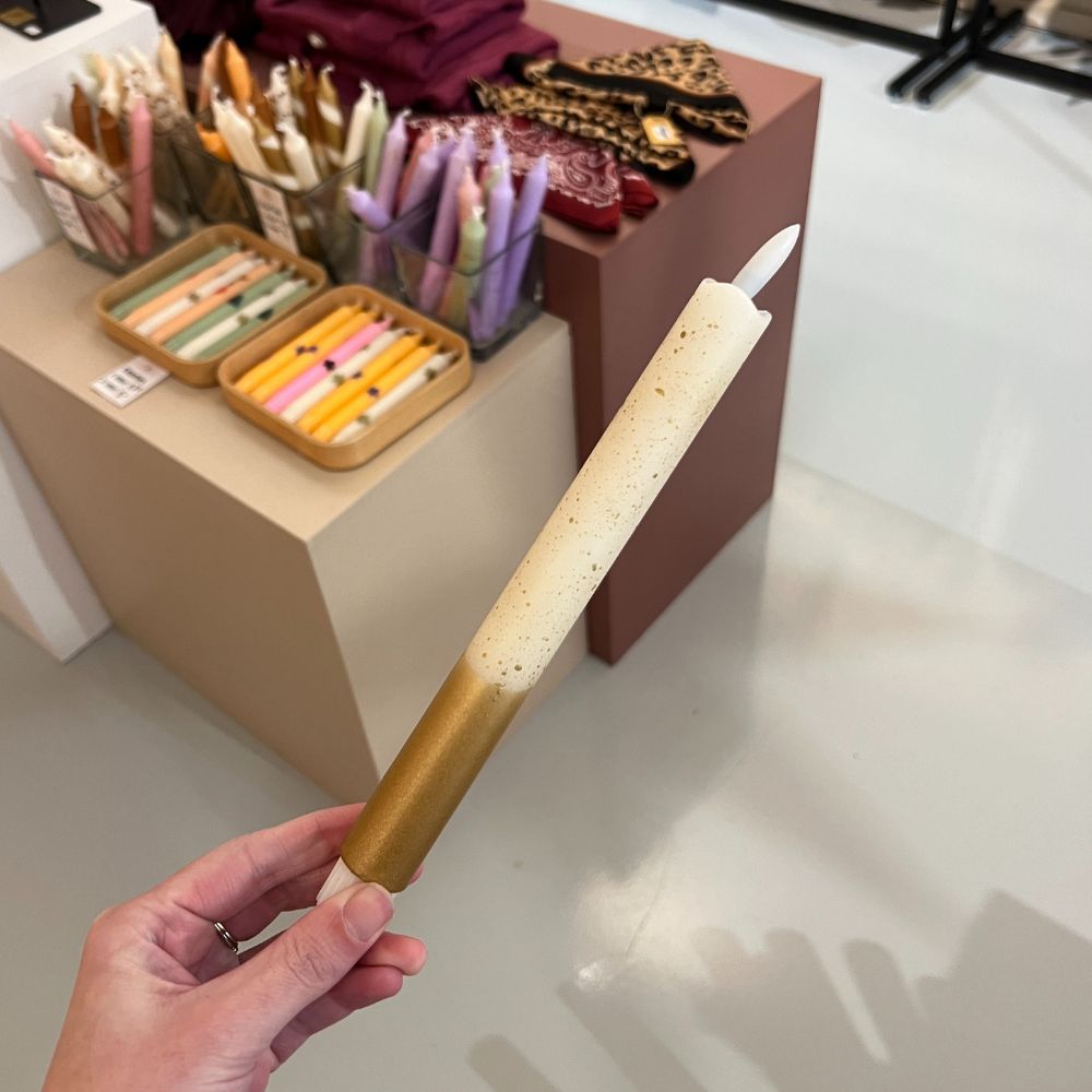 Led kaars - Dip dye Goud/gebroken wit/spetters