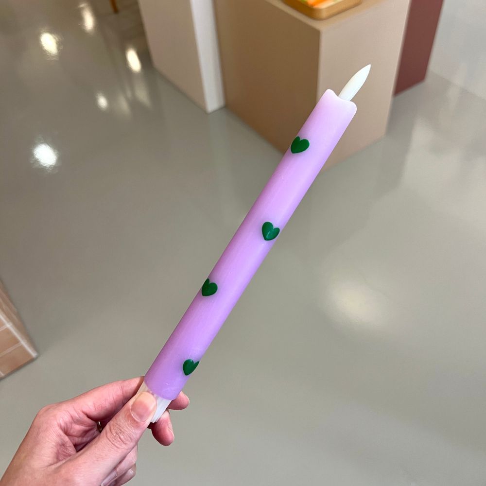 Led kaars - Hartjes lila/groen
