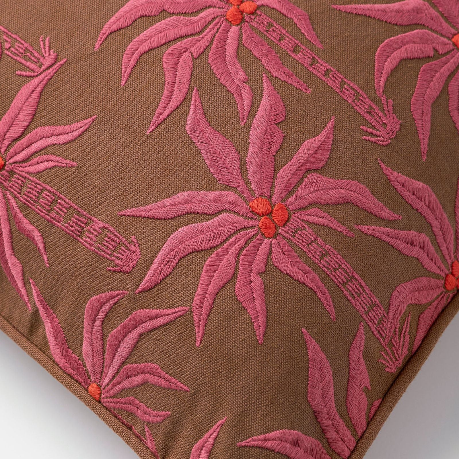 Geef je interieur een boost met dit sierkussen. Dit luxeauze kussen, met prachtige, geborduurde palmbomen, brengt een vleugje tropische elegantie in je huis. Dit kussen is niet alleen een prachtige eyecatcher, maar creëert ook een comfortabele plek om je favoriete boek tegenaan te lezen.