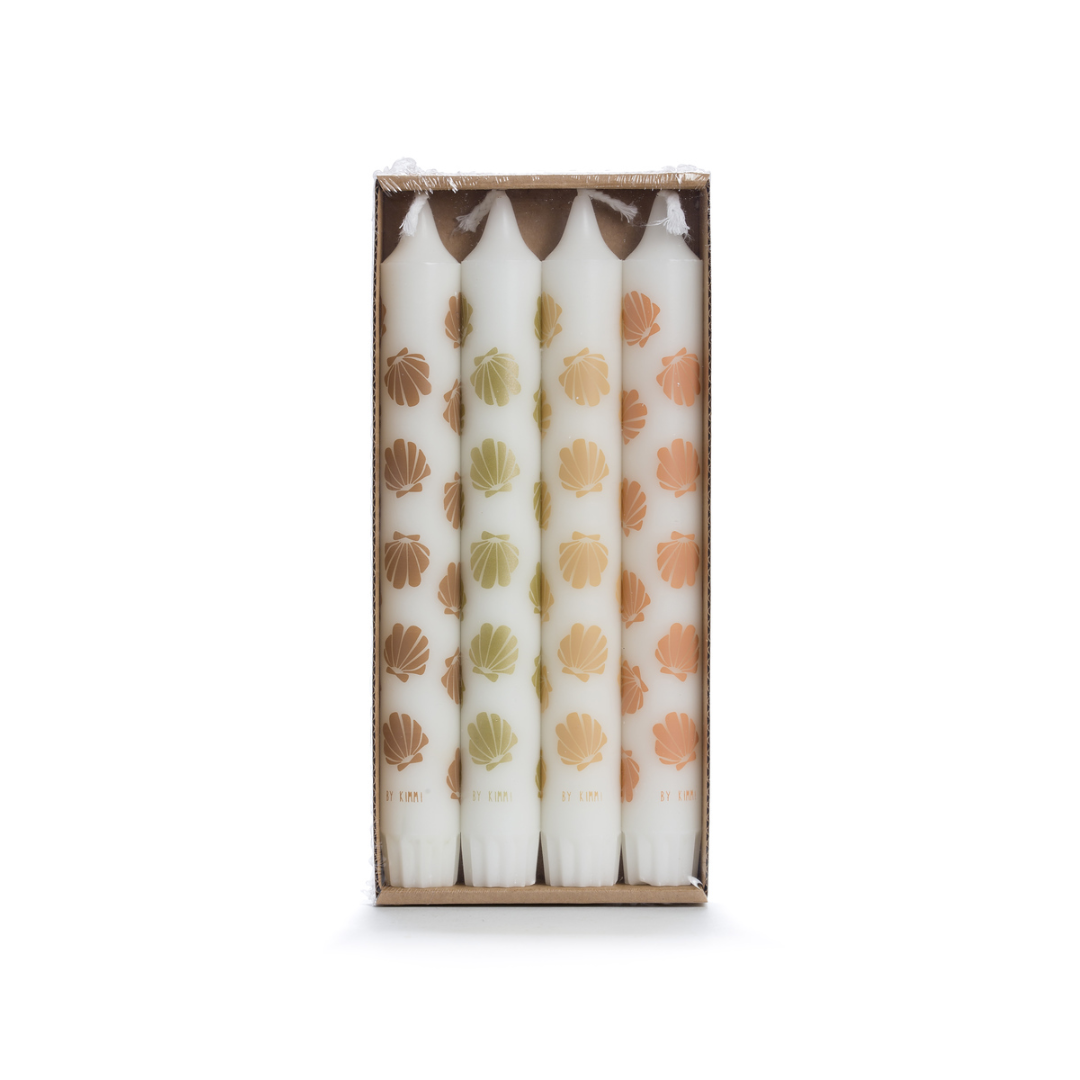 De Rustik Lys By Kimmi dinerkaars Shell is een ware blikvanger op tafel. Met een elegante, handgetekende schelpenprint transformeert deze kaars elk diner in een stijlvolle en sfeervolle ervaring. De set bestaat uit vier kaarsen, elk met een hoogte van 19 cm en een diameter van 2,2 cm. Deze kaarsen zijn niet alleen prachtig om te zien, maar ook een milieubewuste keuze, dankzij het gebruik van 100% stearine en het Nordic Swan eco-keurmerk.