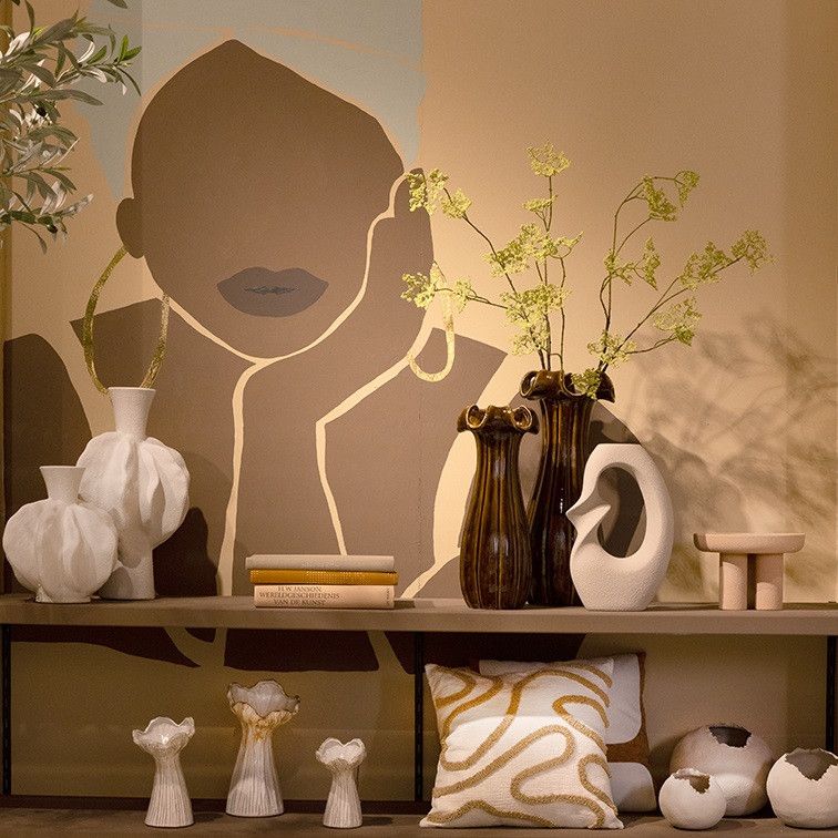 Vaas Rhodé is een vaas met een gedraaide, bijna geknoopte vorm. De speelse lijnen geven beweging en diepte aan het ontwerp. De crèmekleurige tint zorgt voor een rustige basis en past binnen diverse woonstijlen.