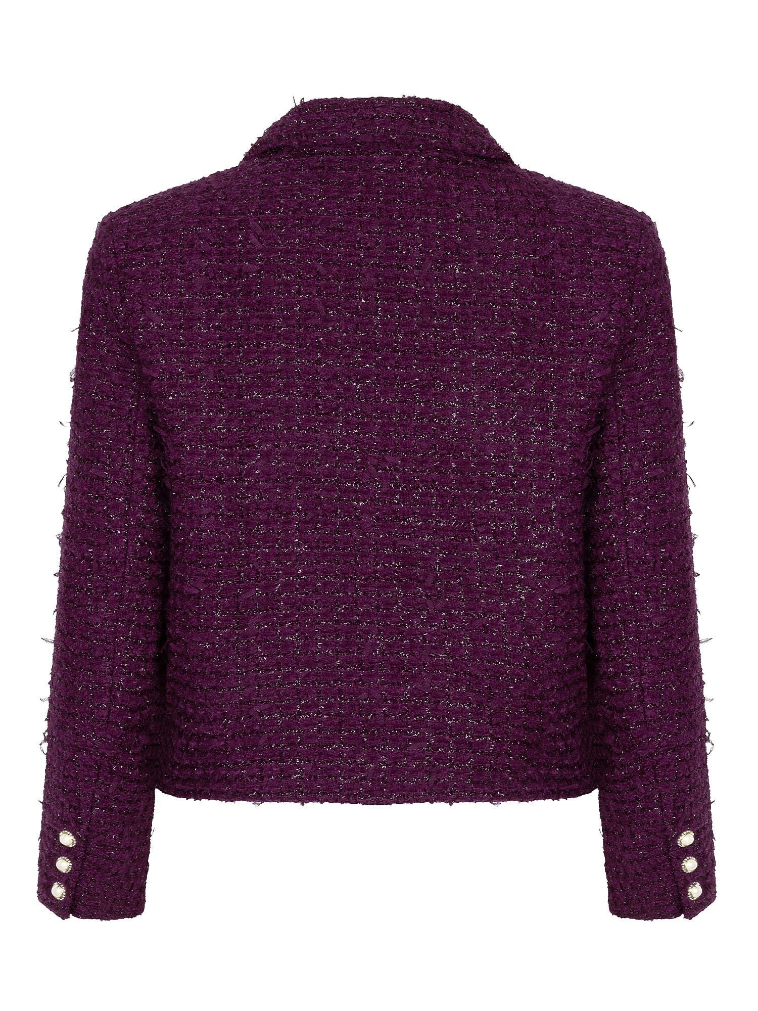 Jacket Wiske van Ydence is een elegant jasje met een korte, rechte pasvorm. Het jasje heeft een klassieke kraag en wordt gekenmerkt door de opvallende parelknopen, die zorgen voor een vrouwelijke en verfijnde uitstraling. Het grove geweven materiaal heeft subtiel lurex in de stof verweven, wat zorgt voor een chique glimmertje en extra luxe uitstraling. De mouwlengte is 58,5 cm en de bodylength 53 cm bij maat S.