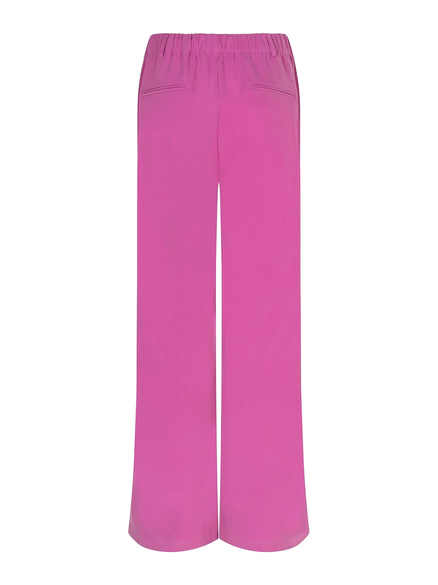 Pants Solange van Ydence is een elegante pantalon met wijde, rechte pijpen. De pantalon heeft steekzakken aan de voorzijde en faux zakken aan de achterzijde. De pantalon sluit met een knoop- en ritssluiting en heeft een elastische tailleband aan de achterzijde. De pantalon is gemaakt van een rijke stof bestaande uit polyester en rayon. De lengtemaat is 108 cm en de binnenbeen lengte is 80 cm bij een maat S.